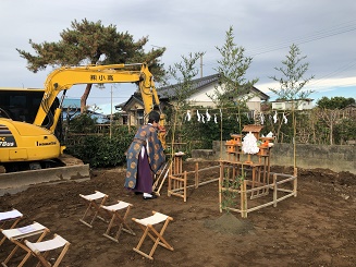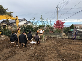 皆さんで 工事の安全 土地のけがれをお願い致しました