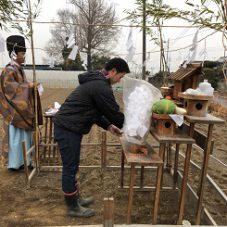 雪が降る中、儀式を行いまして 無事式が執り行う事が出来ましたいよいよ工事スタートです