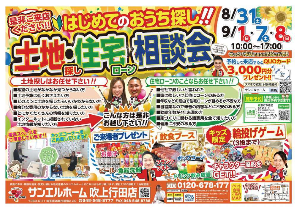 と、言う事で今週も吹上行田店では、「土地探し・住宅ローン・相談会」を開催します