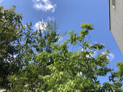 天気のいい日は少しでも外に出たい気分です青い空・白い雲・森林の緑・・・