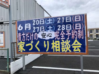 今日は、『安心家づくり相談会』の大きい看板が張られました