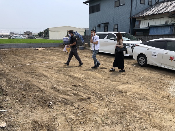 と、言う事で本日工事前にお客様に立会いをして頂き、建物の位置の確認をして頂きました