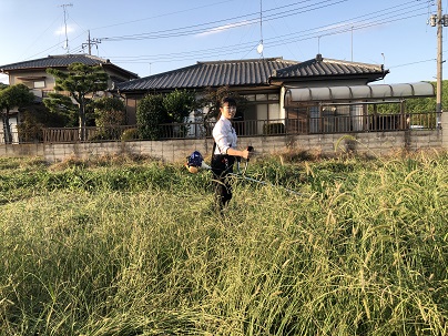 前回の草刈りで習得したらしく、慣れた手つきで草刈り機を使いこないしておりました
