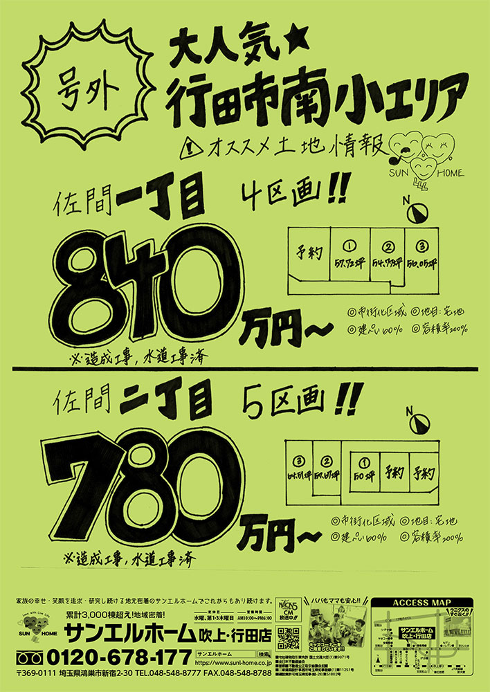 今週のチラシは号外チラシにて 行田市佐間エリアの分譲地になります