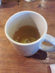 さて、注文を終えまず出で来たのがこのマグカップに入ったスープ