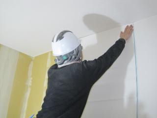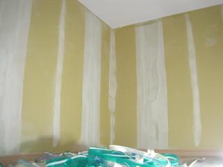 クロス屋さんが壁の石膏ボードを平らに均し・・・