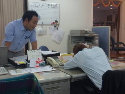 そんな一コマ・・・本日来て頂いたお子様への秘密のプレゼントを作成しています