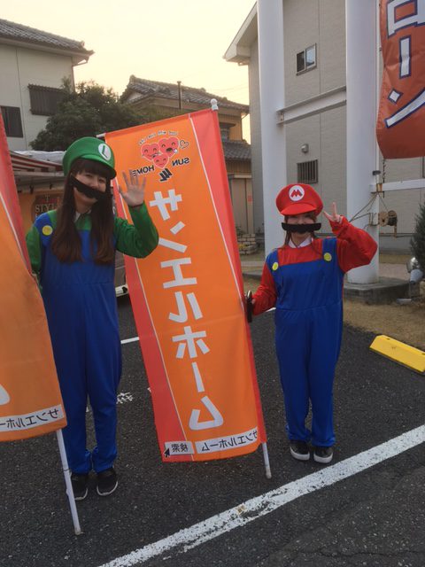 マリオ(高橋ちゃん)の恰好とルイージ(徳ちゃん)、そしてピーチ姫(原ちゃん)でウッシッシ (顔)