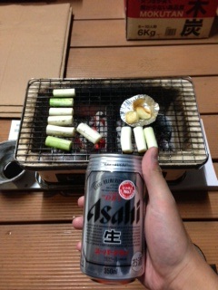 安澤さんのお家で収穫したネギをおつまみに・・・