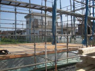 2階の床を貼ったりしながら