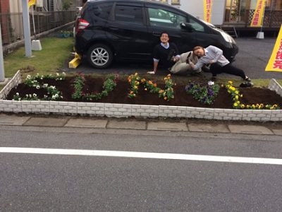 午後は雨がやんだので徳ちゃん・ヤーマンと花壇の花植えをしました