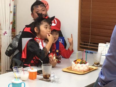 記念にケーキをみんなでフーってロウソクの火を消した後、、、
