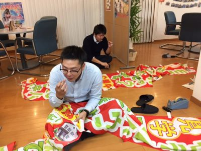 のぼりを縫い合わせていました(笑)