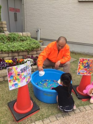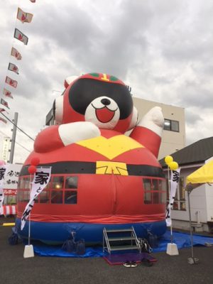協力業者様もお手伝いに来て下さり、飲食ブースや旦那様・奥様限定のゲーム、大きなタヌレンジャーがあったり、お子様が喜ぶ物も多数ご用意しておりました