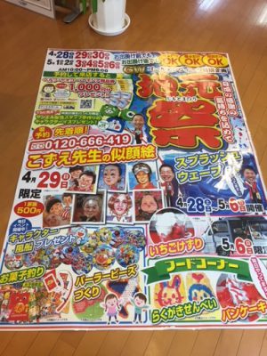 29日はこずえ先生の似顔絵が描いてもらえたり、5/6はキッチンカー いちごけずりがきたりと、日にち限定のものもありますので皆さんHPを要チェックして下さい