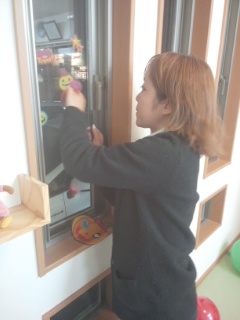 安ちゃんが一生懸命ハロウインのシールを剥がしていました