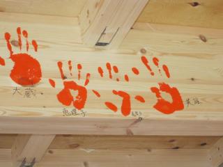 記念に手形を梁におして来ました