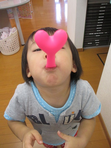 頑張ってハートの風船を膨らませようと必死ですがこれ以上膨らみません(@_@。