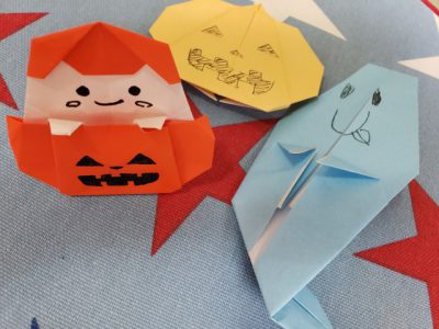 私は先日来店されたお客様のお子さんと一緒に、ハロウィンな折り紙を折りましたるんるん (音符)