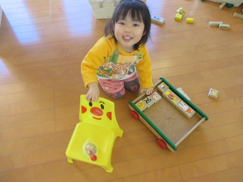 私が作った手作り感満載のアンパンマンのイスを使ってくれてありがとぉ