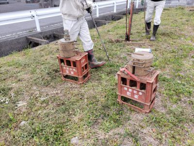 螺旋状でとっても鋭利な器具を地中に差し込んでいきます。