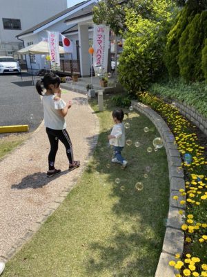 天気が良かったので打ち合わせ中のお客様のお子さんと