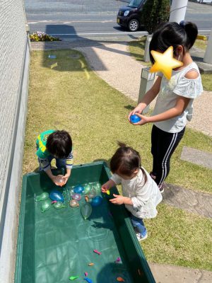 外で水風船とシャボン玉であそびました🎈