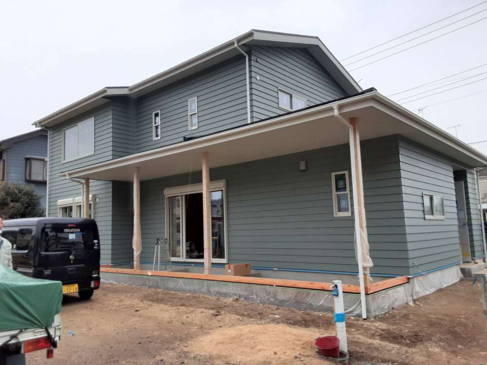 大工さんの仕事が終わった為に熊谷市K様邸の仕上がりチェックあいにくの天気でキレイに撮れませんでしたが外観はカッコよく仕上がっています