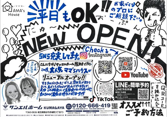 サンエルホーム公式インスタグラム サンエルホーム公式YouTubeチャンネル サンエルホーム公式フェイスブック サンエルホーム公式TikTok サンエルホーム公式LINE