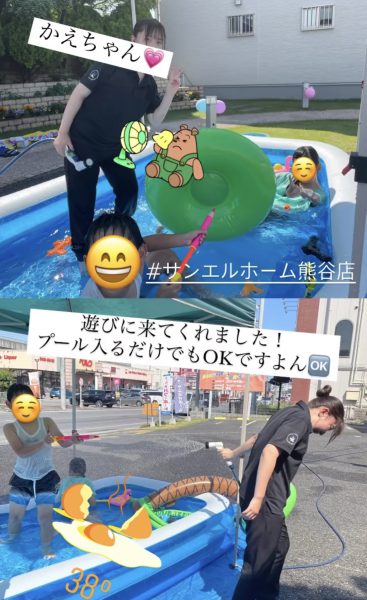 こんなにいい天気で、熊谷店ではプール日和だったみたいです!女性スタッフと楽しそうに遊んでいました