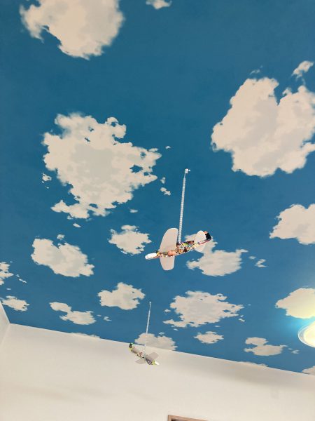 そういえば、熊谷店の天井がお空に変わって、飛行機✈が飛んでいるんです~🐔