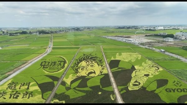 毎年テーマを変えて田んぼアートを開催している古代蓮の里ですが、今年はなんとあの「鬼滅の刃」とのコラボという事で見に行ってきました。