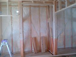 こんにちは、行田店の小林です。この現場は、一般で使用するグラスウールでなく、ウレタンを壁、天井に吹付けて施工しています。この工事が完了したので、これから、床材や石膏ボードを施工する工事になります。