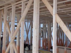 こんにちは。工事の小林です。熊谷市のS様邸です。筋交い、間柱の取り付けが完了しました。今日ジオの躯体検査を受けました。特に問題も無く合格しました。