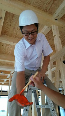 そんなある日 設計の小島さんとM様ご家族と手形をつけた際の