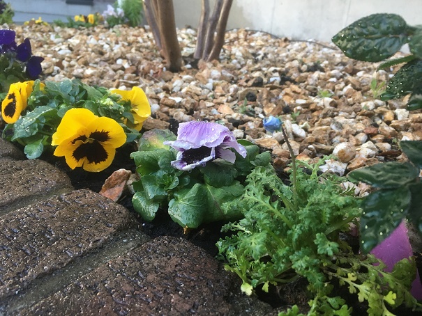 昨日モデルハウス前に植えた花も元気そうでした