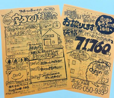 今日からチラシを新バージョンにしてポスティングしましたハートたち (複数ハート)