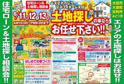 さて、太田店では11~13日の3日間「住宅ローン&土地探し相談会」をやります!!