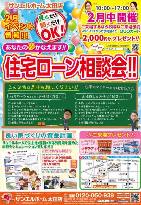 今月は、一か月通して住宅ローン相談に力を入れておりますサンエルホーム太田店です。