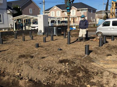 軟らかい地盤でお家を建てる場合は、このような工事が必要になってきます