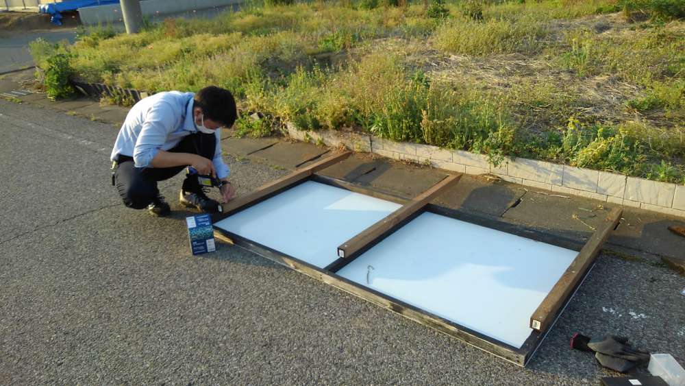 看板は9月上旬完成予定のモデルハウスの案内看板です。