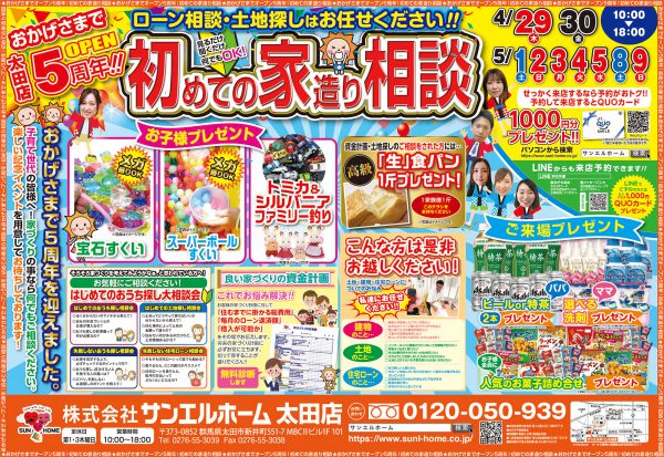 サンエルホーム太田店のGWイベントは、5月8日9日まで開催していますので、