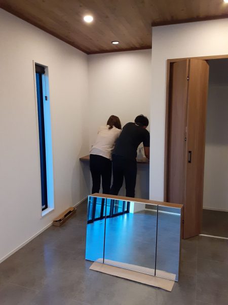 下の鏡はこれから洗面台に付く予定ですウッシッシ (顔)
