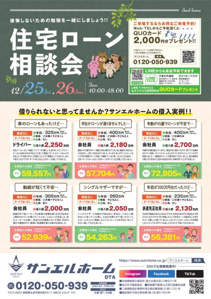 12月25日26日は、住宅ローン相談会を開催します
