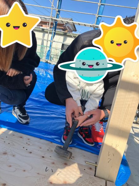 実際にお客様に柱を一本建ててもらいトントンしてもらいました