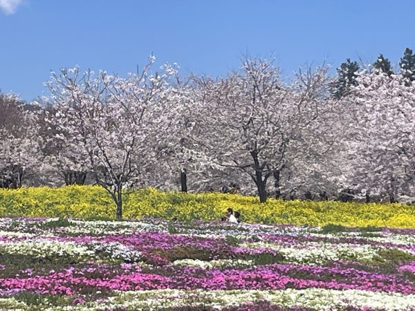 桜だけでなく芝桜や菜の花もキレイに咲いていて春の花の共演も楽しめます。