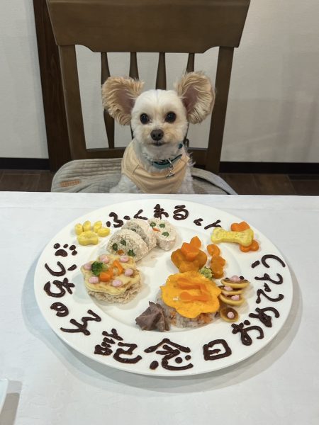 僕たち用の料理もとても美味しかったですが、福丸用のお祝いプレートがものすごく豪華で