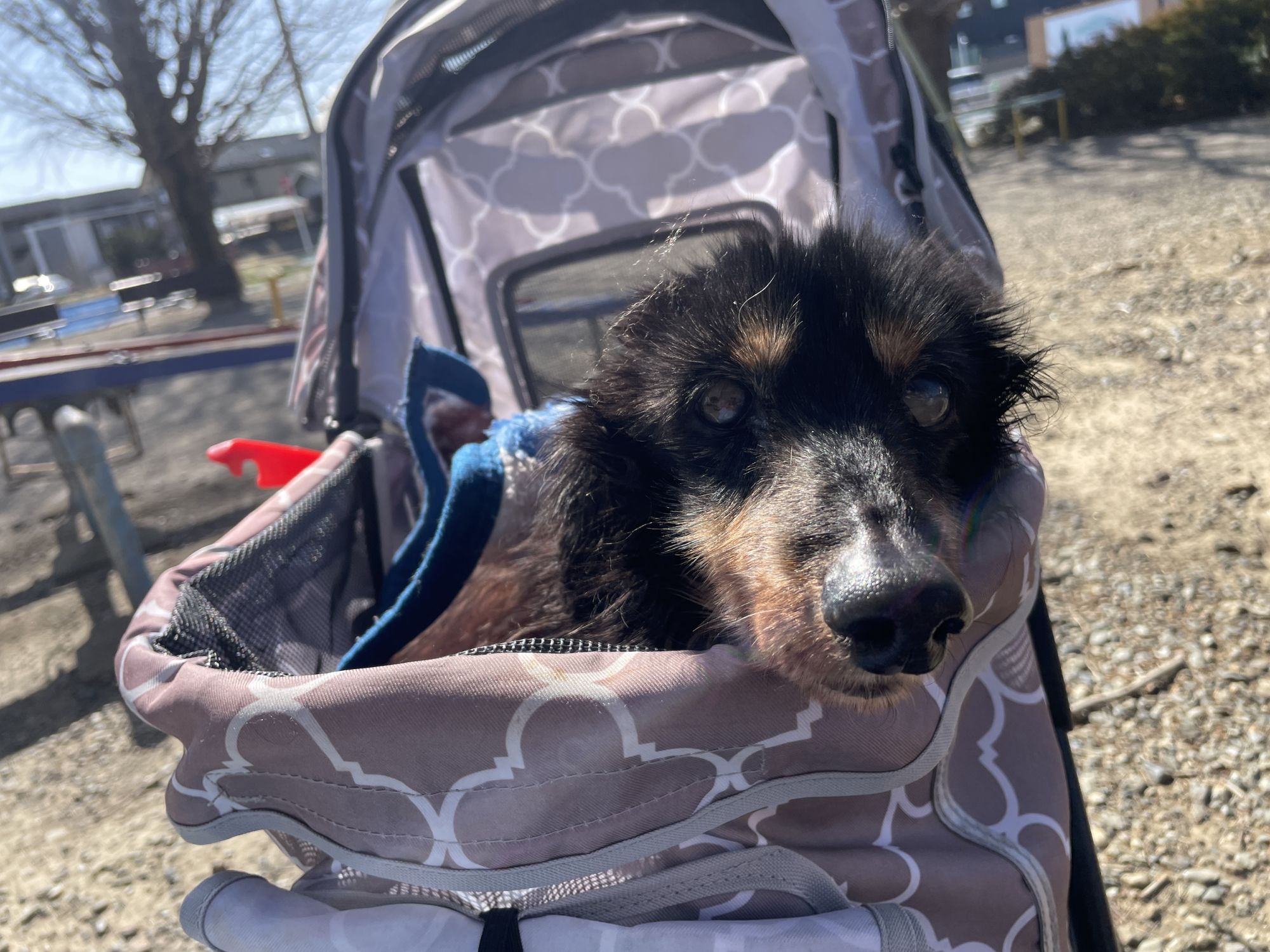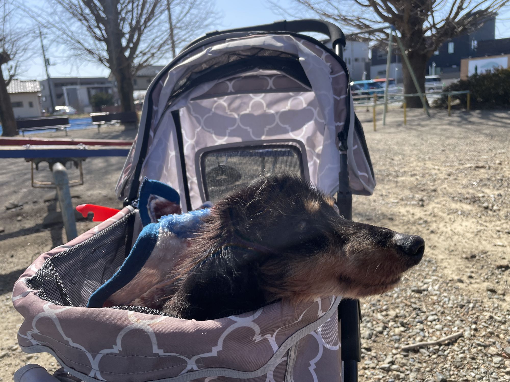 散歩といってもほぼ寝たきり老犬のジャックですので、ペットカートに乗っての散歩です。外に出るのは本当に久しぶりだったのでジャックもなんだか嬉しそうでした。