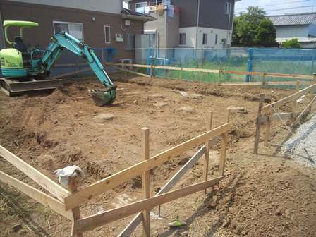 こんにちは。工事の小林です。行田市のT様邸基礎工事着工しました。写真は根伐りが終わってこれから砕石を入れるところです。晴れが続いているので基礎工事を行うにはよかったです。