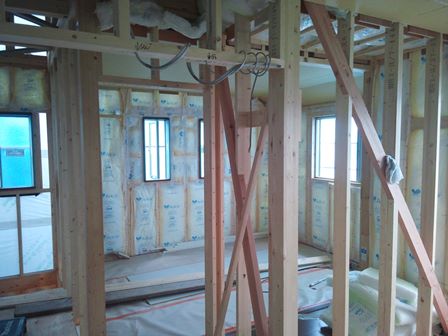 こんにちは。工事の小林です。鴻巣市H様邸の工事の進捗です。断熱施工が終わって今は、天井の石膏ボード貼りをしています。外は来週からALCの施工を行います。